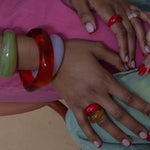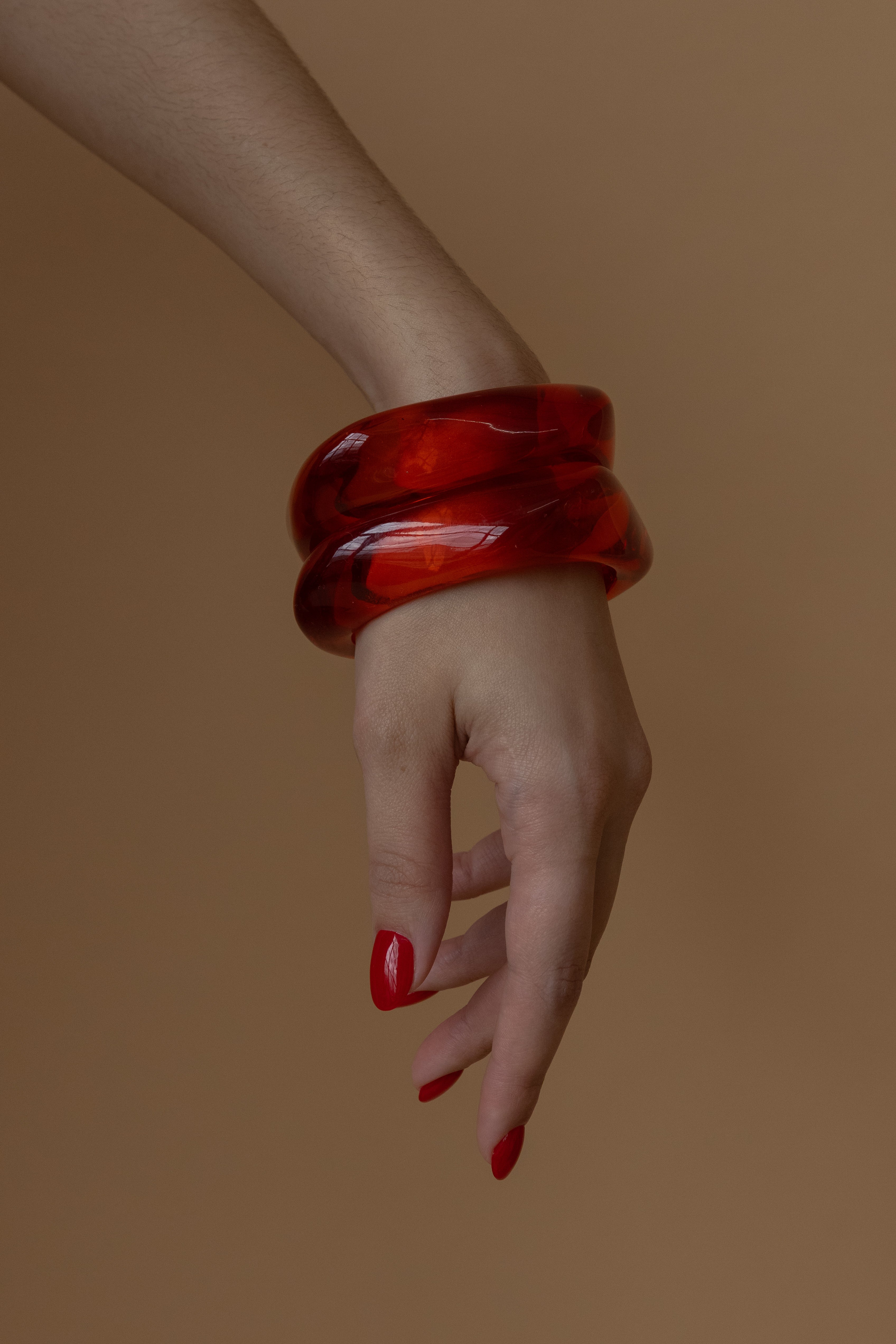 By handwork, each bracelet carries subtle variations in its color swirls. No two are exactly alike.